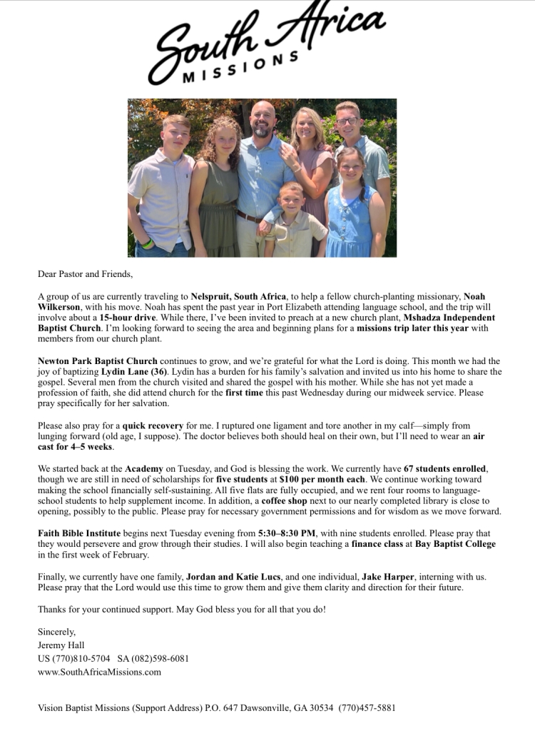 January 2026 Prayer Letter By jhsouthafrica|2026-01-23T20:37:38+00:00January 23rd, 2026|Prayer Letter|0 Comments Share This Amazing Location! FacebookTwitterWhatsAppPinterestVk Related Posts November/December 2025 Prayer Letter November/December 2025 Prayer Letter December 6th, 2025 | 0 Comments August/September 2026 Prayer Letter August/September 2026 Prayer Letter September 19th, 2025 | 0 Comments May 2025 Prayer Letter May 2025 Prayer Letter July 1st, 2025 | 0 Comments February 2025 Prayer Letter February 2025 Prayer Letter February 26th, 2025 | 0 Comments August 2024 Prayer Letter August 2024 Prayer Letter August 23rd, 2024 | 0 Comments June 2024 Prayer Letter June 2024 Prayer Letter June 26th, 2024 | 0 Comments Leave A Comment Cancel replyComment Save my name, email, and website in this browser for the next time I comment.